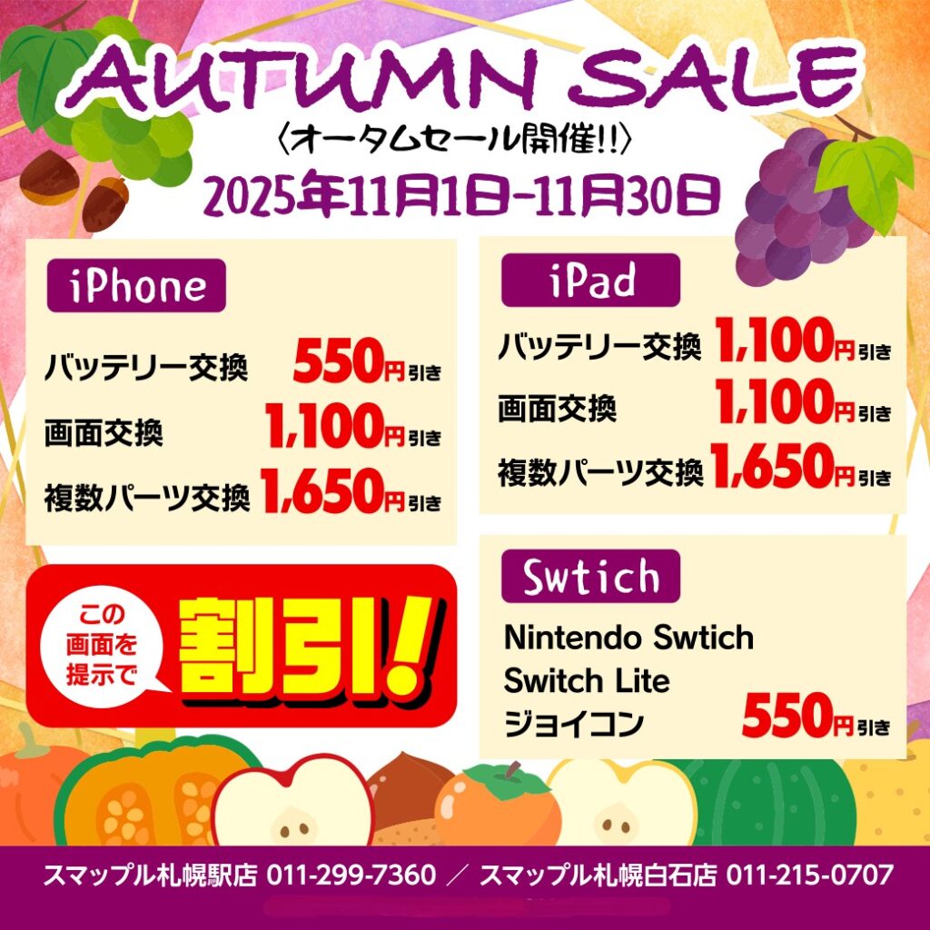 オータムセールでお安く修理!